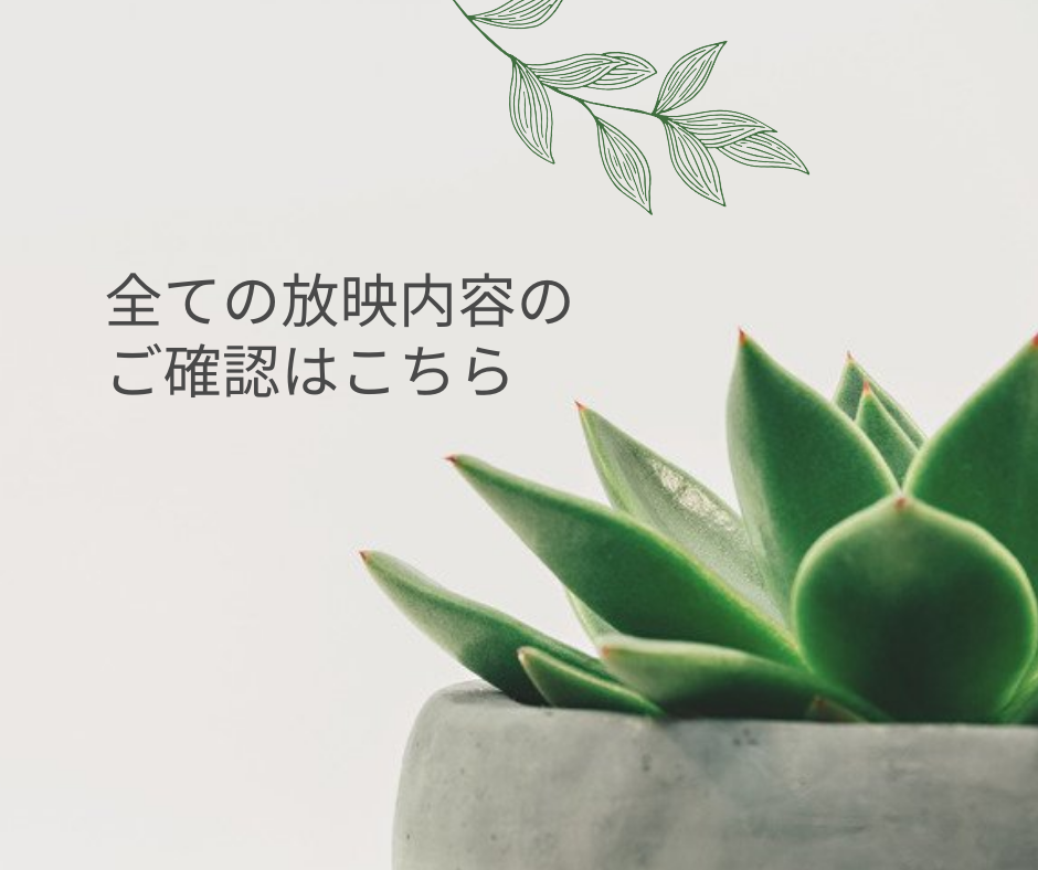 ホーム放映内容 12ヶ月分の放映内容 下部の左側リンクからPDFをサイト上で開くことができ、下部の「ダウンロードボタン」にてPDFのダウンロードが可能です。 WEBからご覧の方は、中央の「+」で拡大、右側のアイコンからPDFのダウンロードや印刷が可能です。 年間番組表(30分編成)_newダウンロード お問い合わせ 貴院名(必須) メールアドレス(必須) タイトル メッセージ本文 (詳細をご記入ください)